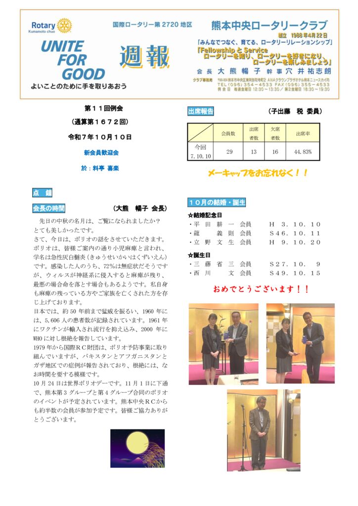 週報【令和6年2月9日】 例会 第22回例会(通算1174回) ・会長挨拶 ・幹事報告 週報を読む 週報を読む バックナンバー ー BackNumber ー 週報【令和7年10月10日】 週報【令和7年10月3日】 週報【令和7年9月12日】 週報【令和7年9月5日】 週報【令和7年8月29日】 週報【令和7年8月22日】 週報【令和7年8月6日】 週報【令和7年8月1日】 週報【令和7年7月18日】 週報【令和7年7月11日】 週報【令和7年7月4日】 週報【令和7年6月20日】 週報【令和7年6月13日】 週報【令和7年6月6日】 週報【令和7年5月30日】 週報【令和7年10月10日】 熊本中央 ロータリークラブ事務局 〒860-0034 熊本市中央区東阿弥陀寺町2 ANAクラウンプラザホテル 熊本ニュースカイ内 TEL:096-354-4533 例会:金曜日12:30〜 第二金曜日18:30〜 MENUHOME 会長挨拶 ロータリークラブについて 行事計画 週報 お問い合わせ